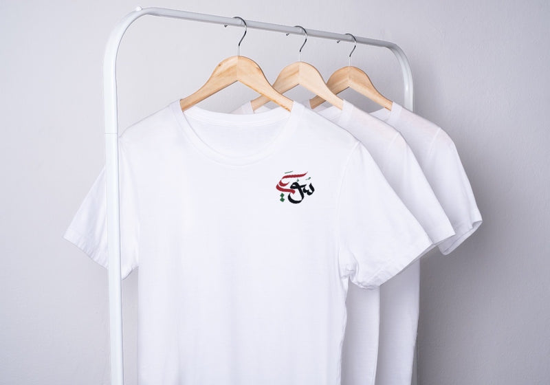 Represent your roots this summer with our Heritage Collection. This design features the name of your country in Arabic Calligraphy embroidered in thread colors corresponding to your country's flag. Find an embroidered patch of this flag attached on the right sleeve. We are privileged to be able to offer this design for 16 different countries!