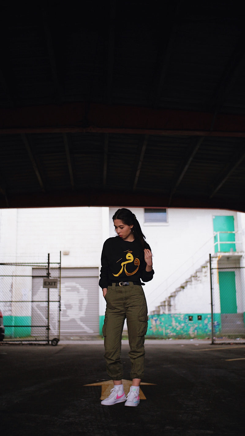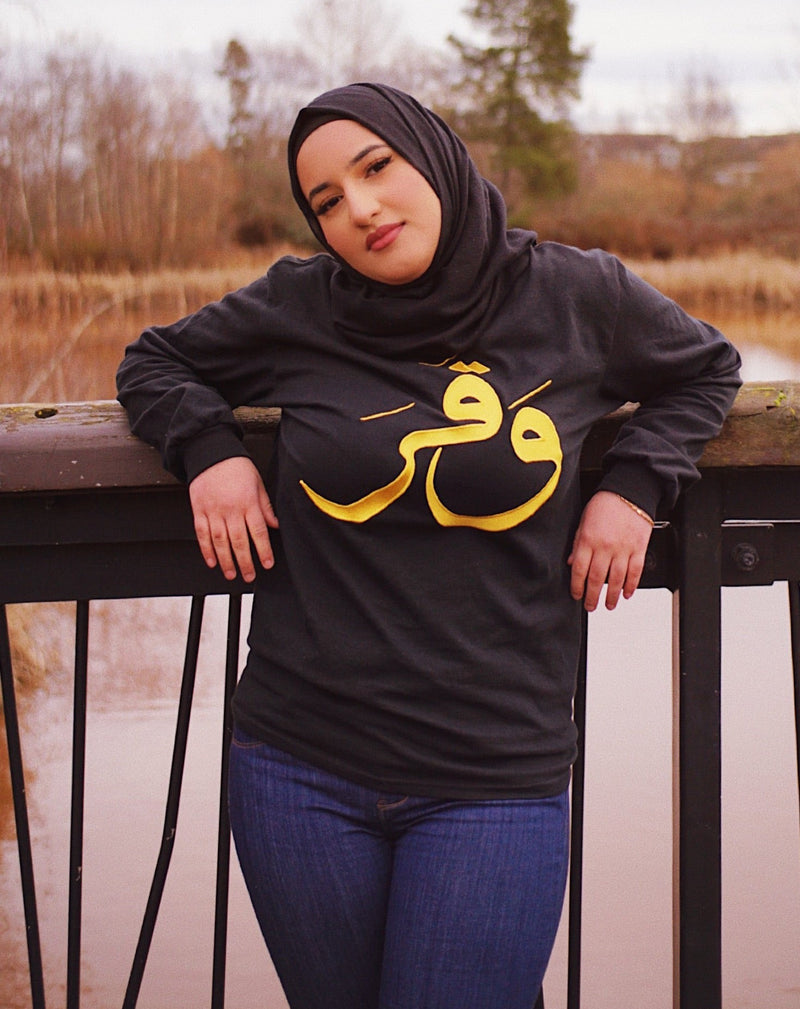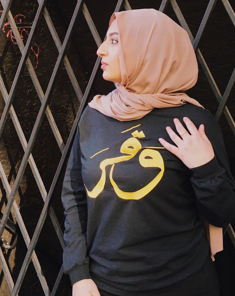 The word Waqara in Arabic, fully embroidered on the front chest using 44,000 stitches. This heavyweight tee is the ideal weight for the spring weather, and the 10" design will make a bold statement of your legacy.