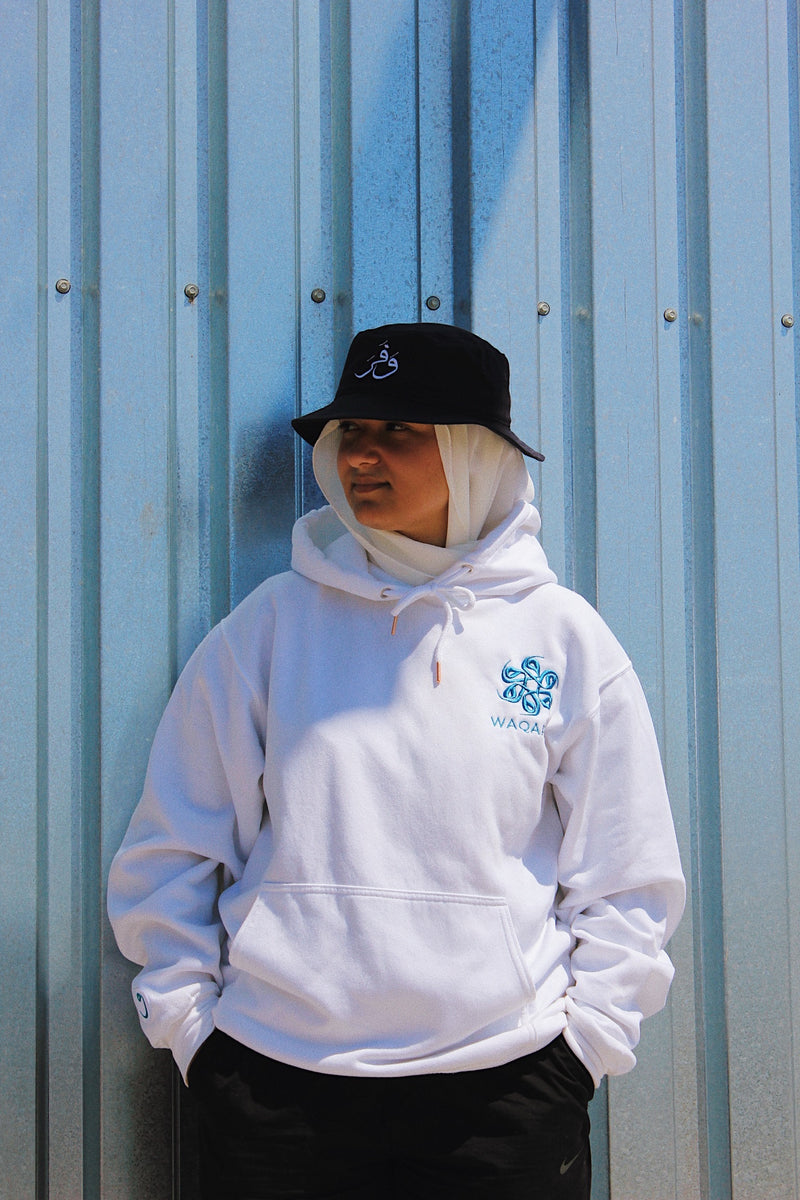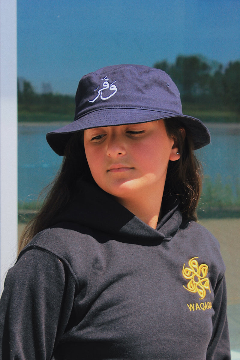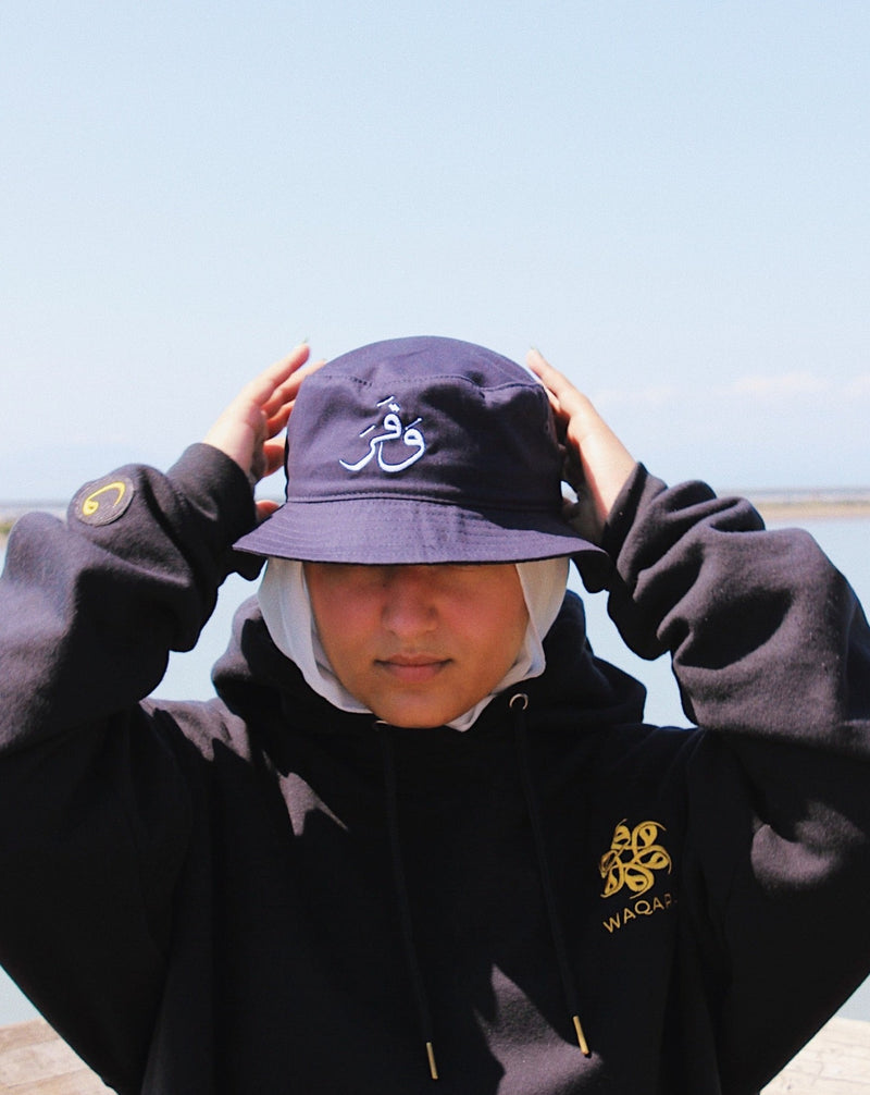 Navy blue with white embroidery