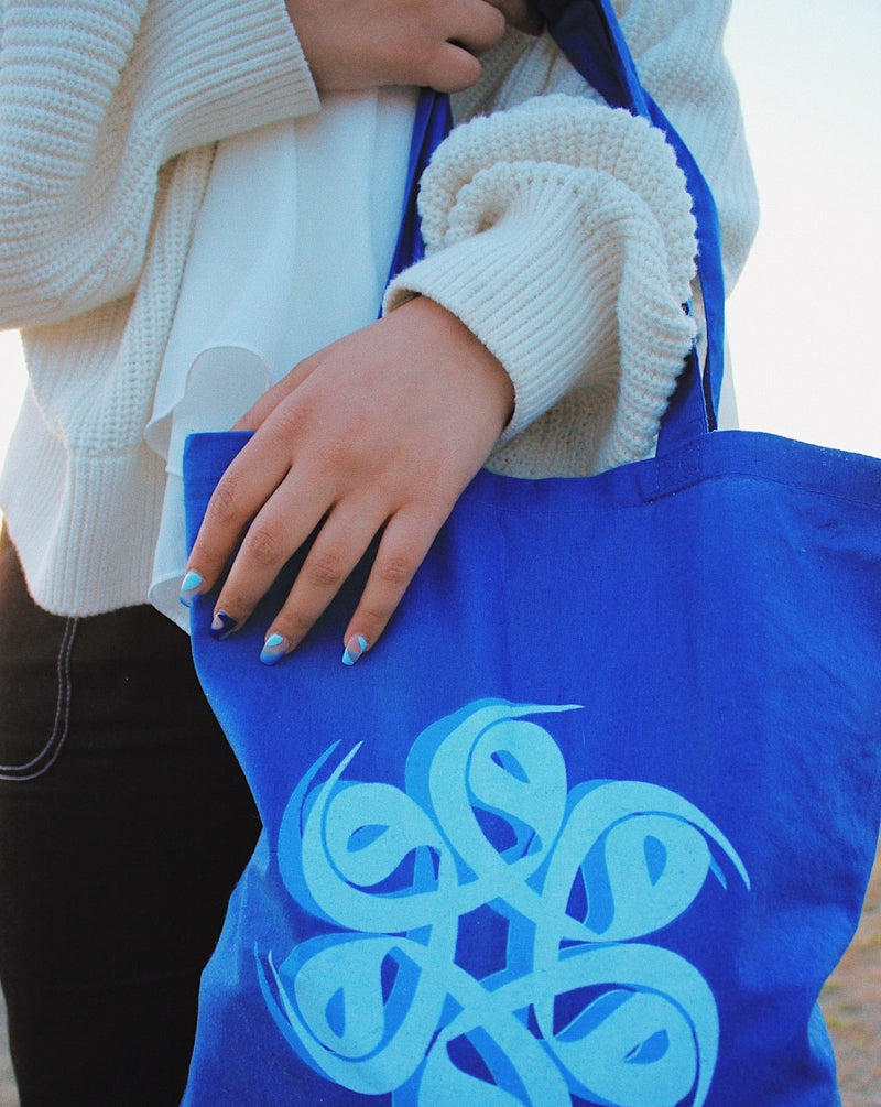 Our Waqara Tote Bags provide a stylish way to carry your things to the beach. The triple-blue glitch design is eye catching from a distance. Our Tote Bag is the perfect accessory for any summer day, out and about.
