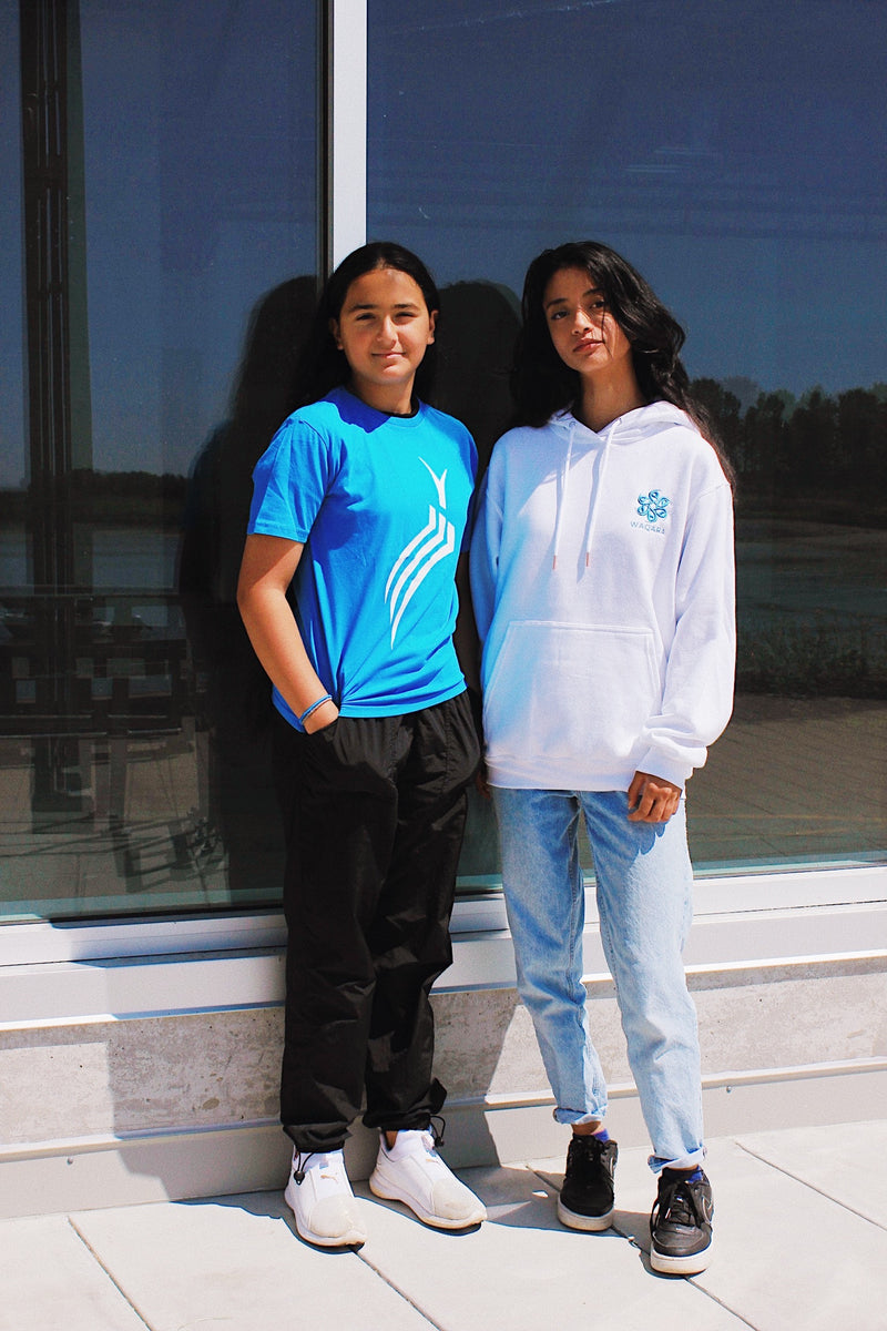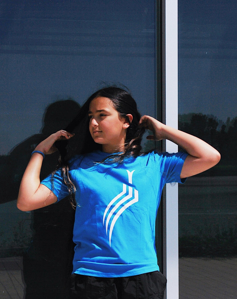 The first line to the far right represents the letter "و". The second line in the middle represents the letter "ق". here we can see the 2 streaks joined above the middle line to represent 2 dots of the letter. The final line to the far left represents the letter "ر". We modified the design of the original Full Sleeves Tee to a tribal look that it connects the eastern and western cultures.